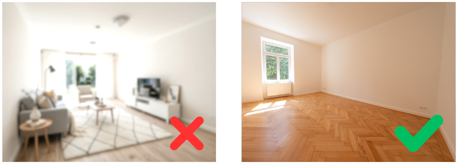 Die Qualität deiner Ergebnisse hängt stark von der Qualität deines Eingabebildes ab. Ein gutes Ausgangsbild hilft der KI, Räume präzise zu erkennen und realistische Ergebnisse zu erzeugen – ganz gleich, ob du Objekte entfernst, Räume möblierst oder individuelle Veränderungen vornimmst.